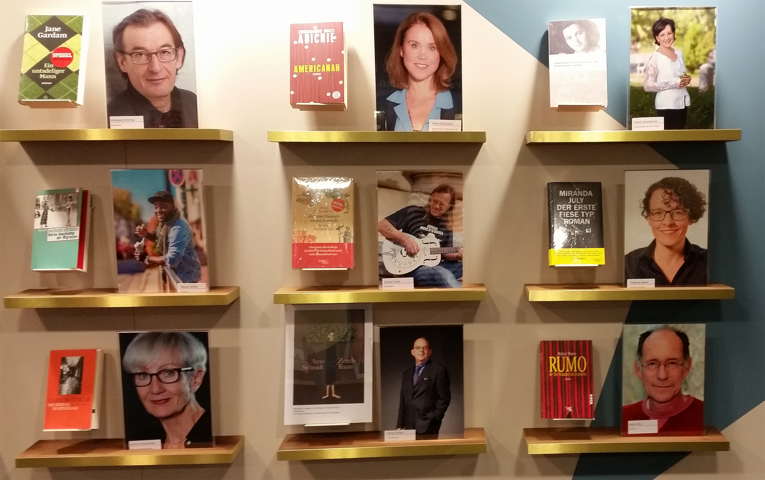 „Hall of Fame“ im Buchhaus Wittwer. Die aktuelle Buchempfehlung: Markus Orths: „Lehrerzimmer“ (Foto: Wittwer, 12/2016)