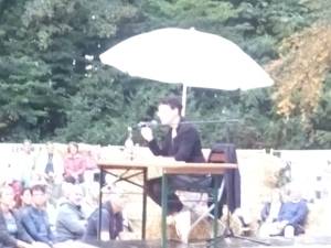 Adrienne Braun war wieder mal zu Gast beim Strohländle Leonberg. Alle Liegestühle und Heuballen auf der Engelbergwiese waren belegt, weil so viele Interessierte die Autorin persönlich erleben wollten bei ihrem Kolumnenprogramm „Gesprochenes Geschreibsel“. Darin erzählt Adrienne Braun auch viel aus ihrem Alltag als Kulturjournalistin, die häufig kluge und neunmalkluge Kommentare von LeserInnen bekommt – nach dem Motto: Schön ist es, recht klug zu sein, doch klüger sein, ist doppelt sind. Ein gelungener Abend – zumal sich der Regen dann doch wieder verzog.