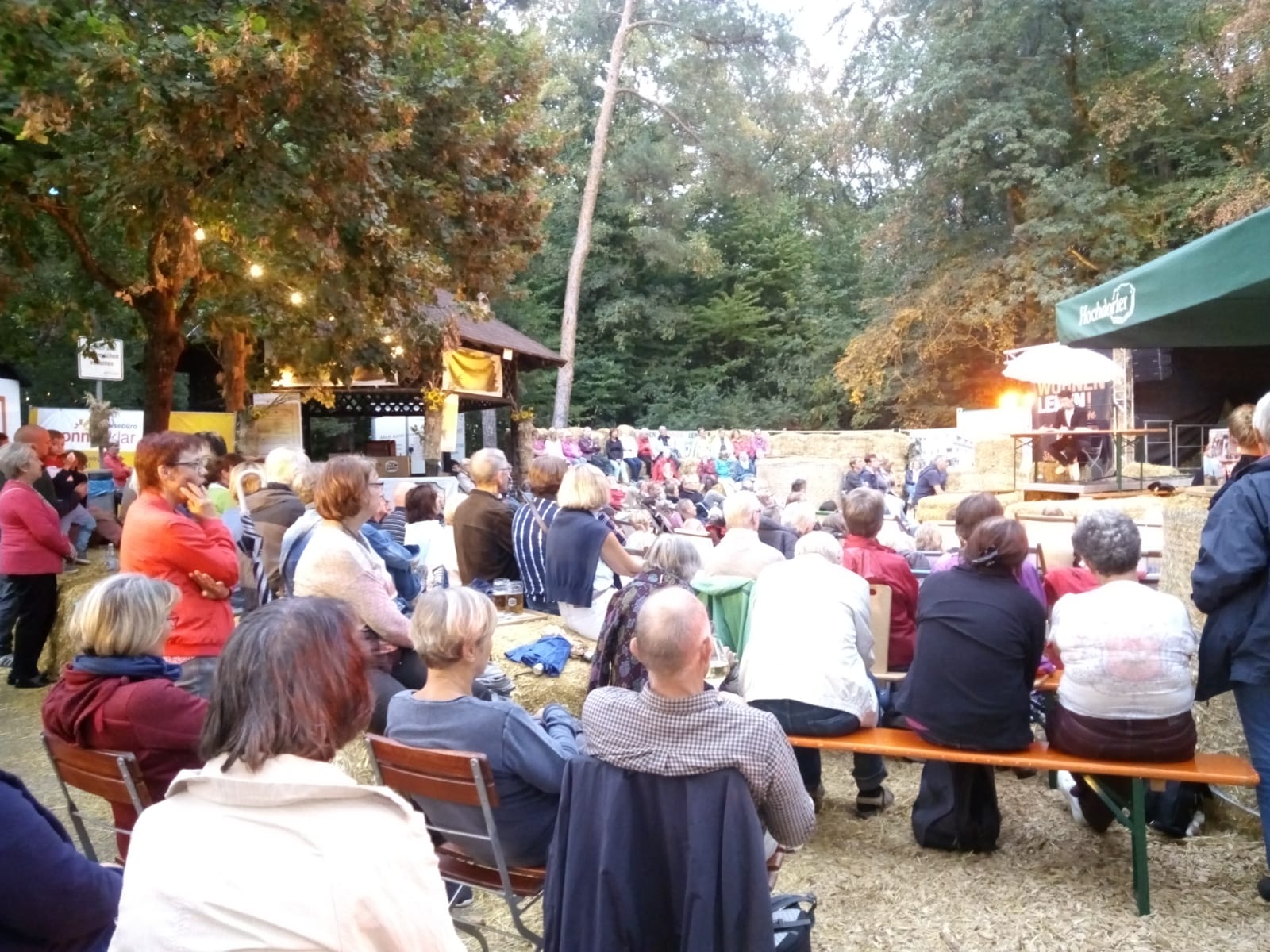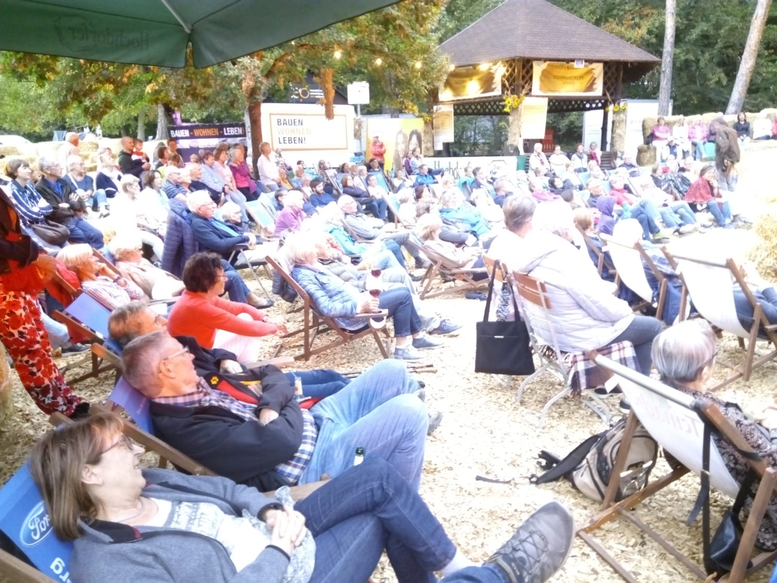 Adrienne Braun war wieder mal zu Gast beim Strohländle Leonberg. Alle Liegestühle und Heuballen auf der Engelbergwiese waren belegt, weil so viele Interessierte die Autorin persönlich erleben wollten bei ihrem Kolumnenprogramm „Gesprochenes Geschreibsel“. Darin erzählt Adrienne Braun auch viel aus ihrem Alltag als Kulturjournalistin, die häufig kluge und neunmalkluge Kommentare von LeserInnen bekommt – nach dem Motto: Schön ist es, recht klug zu sein, doch klüger sein, ist doppelt sind. Ein gelungener Abend – zumal sich der Regen dann doch wieder verzog.